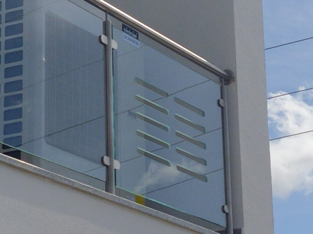 Trabalho em inox com vidro cortada a jacto de água
